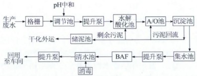 紡織廢水處理采用A/O處理工藝,回用水處理工藝是在原有工藝基礎上增加了水解酸化池、BAF池等單元進行組合。